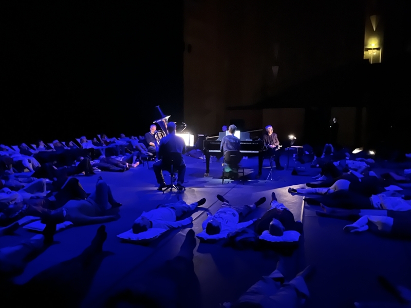 Concert à 23h – Le public est allongé sur le sol – Durée approximative : 1h – Places non numérotées – Accessible aux PMR, nous contacter